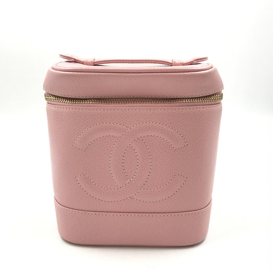 Chanel Preloved Pink Caviar Vanity Case with Zipper - B+ Elegance and Timeless Charm